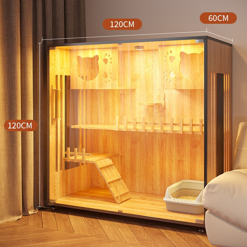蒂乐森 猫别墅实木猫笼子猫舍家用猫窝展示柜两层猫咪繁育笼超大猫屋 B9防水款120*60*120CM 自己安装 送货到家