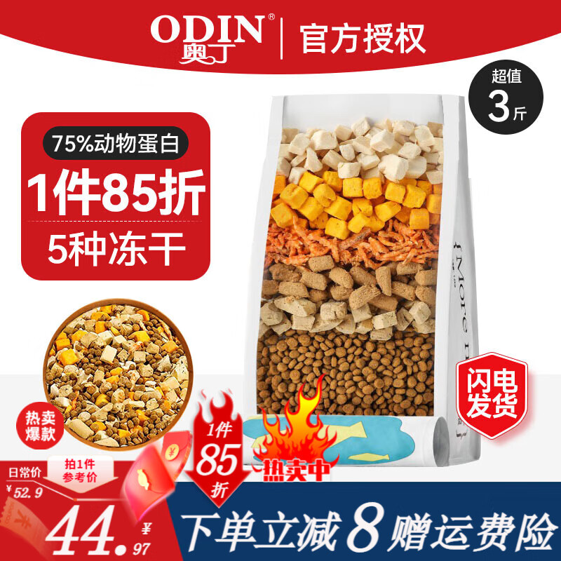 奥丁(ODIN)猫粮成猫幼猫布偶全价冻干鸡肉粒多拼鲜肉粮 五拼冻干鲜肉粮1.5kg