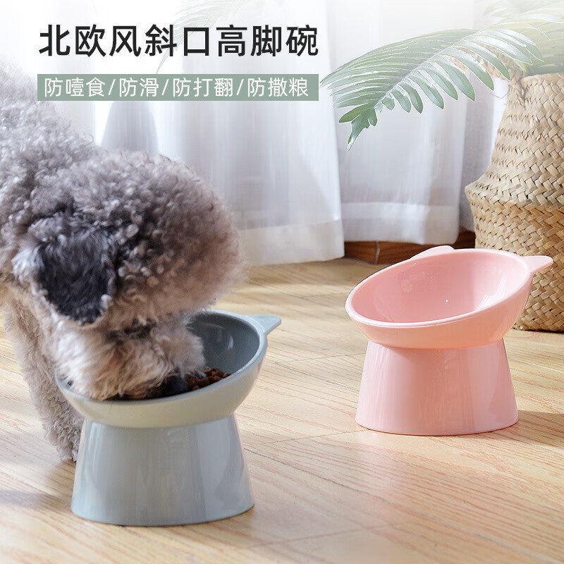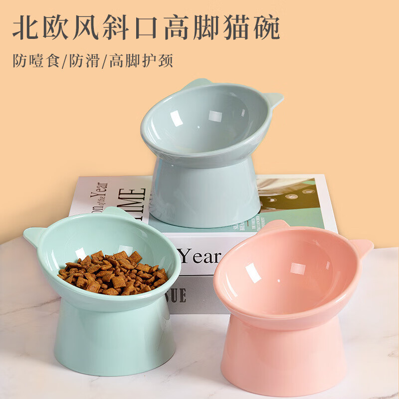 JHHUIYA猫碗保护颈椎防打翻单碗狗猫咪食盆宠物喝水一体护颈饭盆粮碗高脚 绿色
