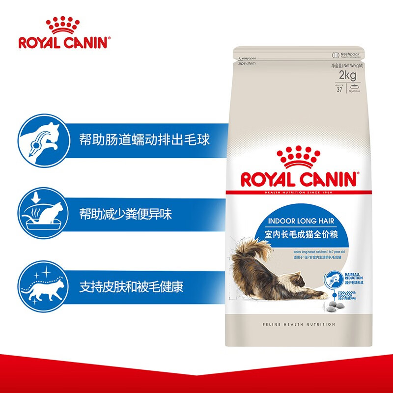 皇家猫粮室内长毛成猫全价粮ILH35波斯布偶通用型主粮促排便毛球 2kg 成年期猫咪