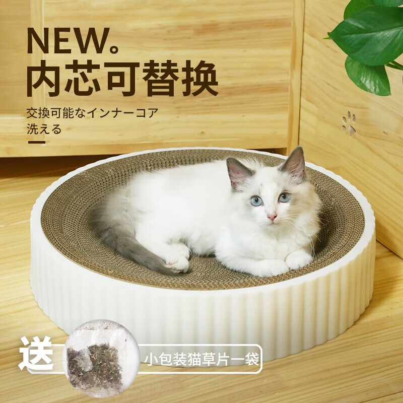 共度 耐磨猫窝 耐用猫爪板窝 磨爪瓦楞纸宠物猫咪玩具用品 时空罗盘猫抓板白色 大号(一支内