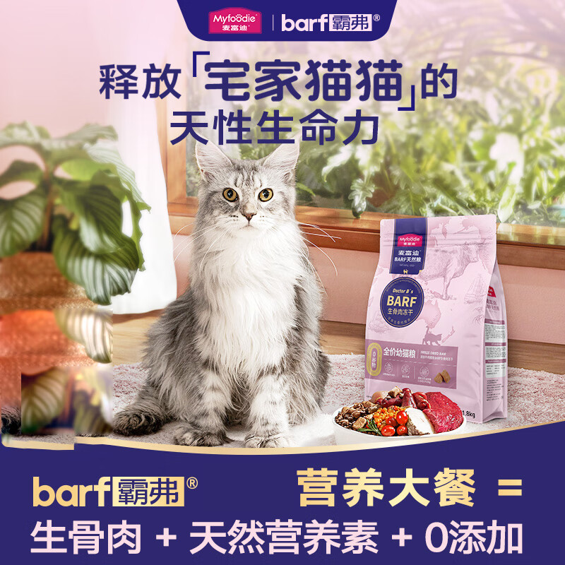 麦富迪(Myfoodie)BARF猫粮 冻干双拼粮生骨肉成猫幼猫全猫无谷粮 牛肉 鳕鱼成猫粮1.8kg