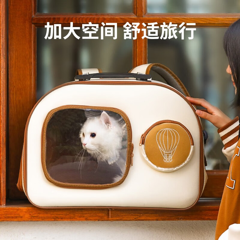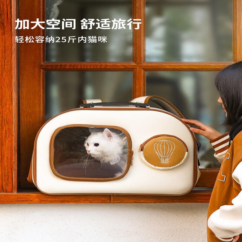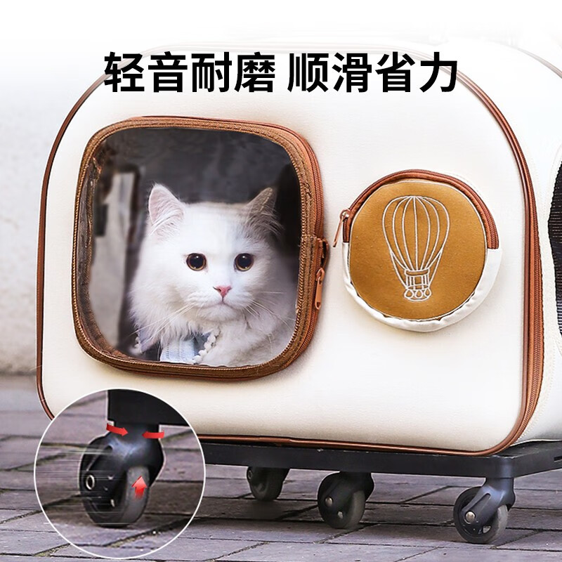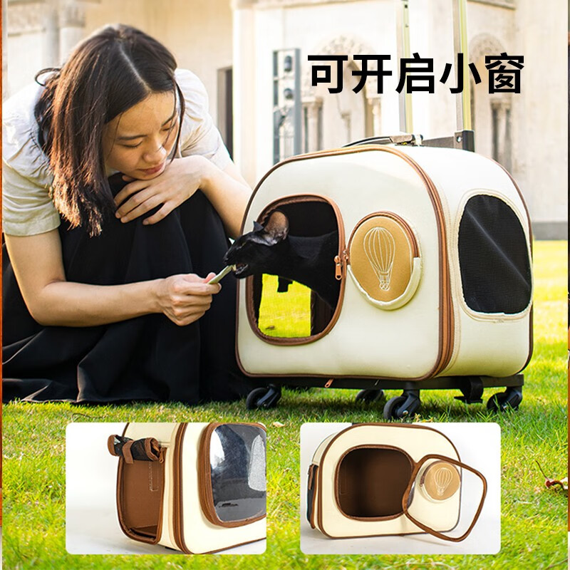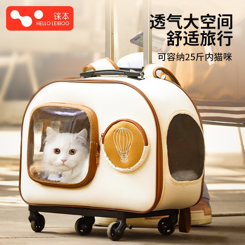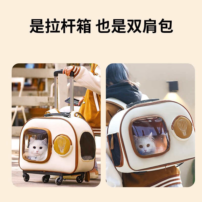 HELLOLEIBOO徕本 猫包拉杆箱外出便捷背包大容量狗狗行李箱宠物透明双肩包猫 米色电视机猫包