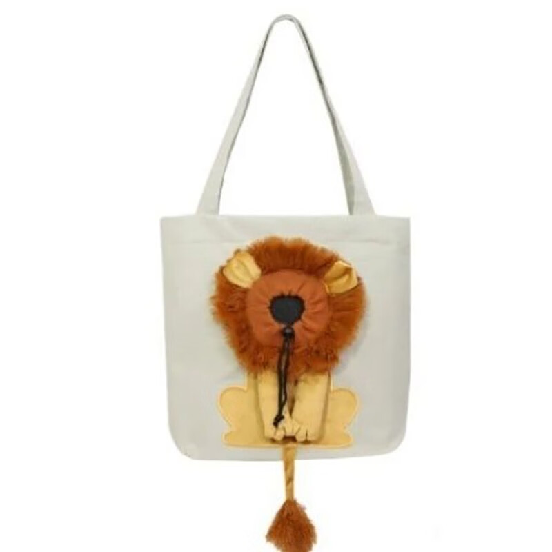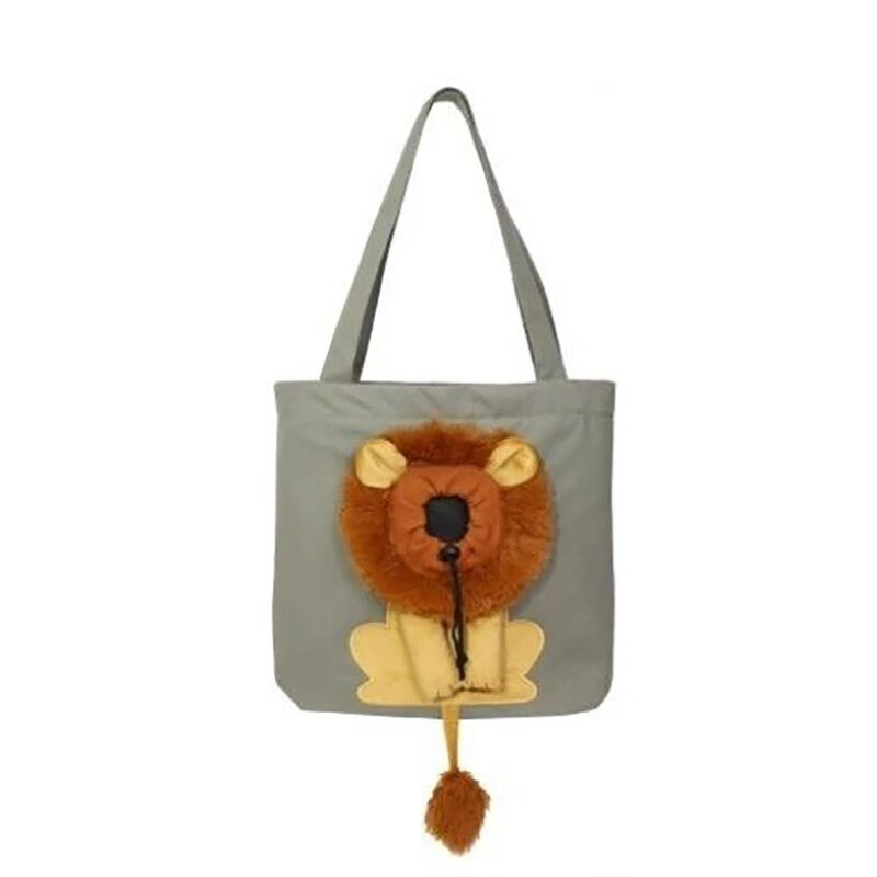 逗点熊猫包可爱高颜值猫咪外出包狮子头套卡通便携式户外单肩包猫咪包包 狮子包湖蓝色大号(12斤内)