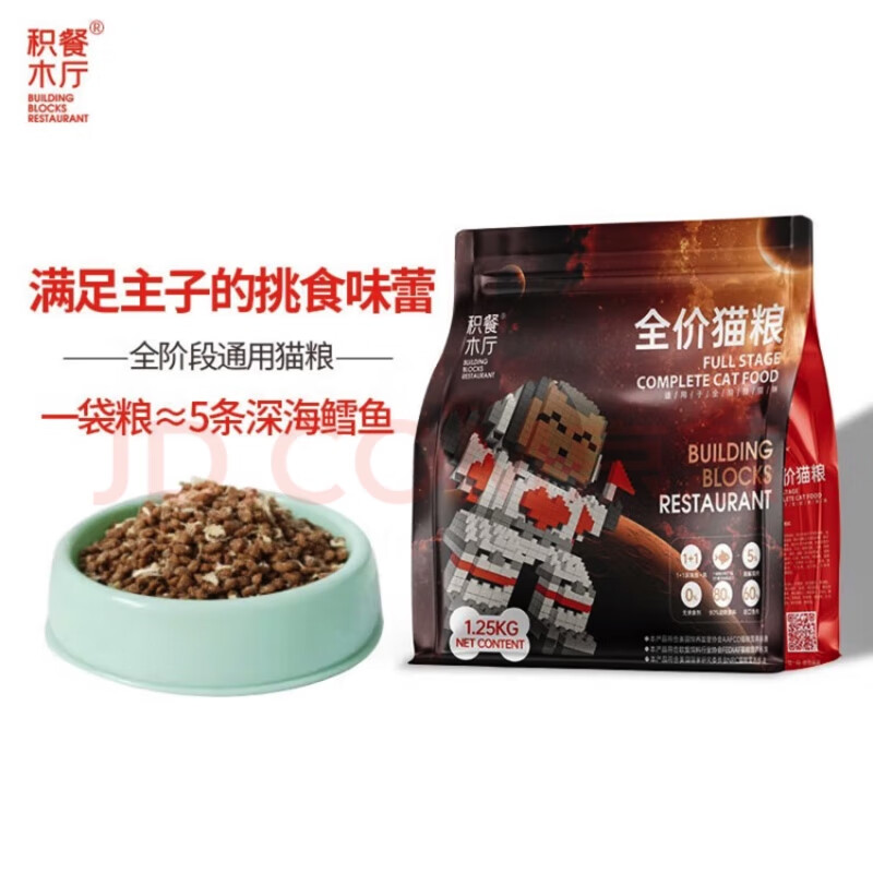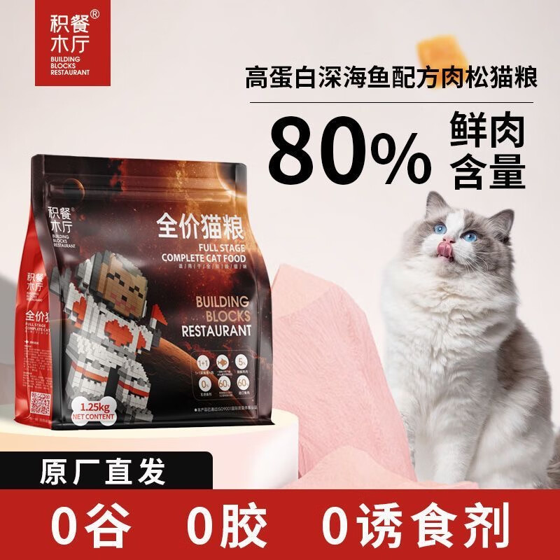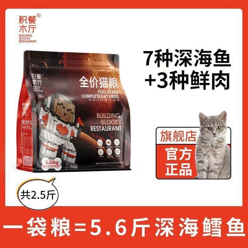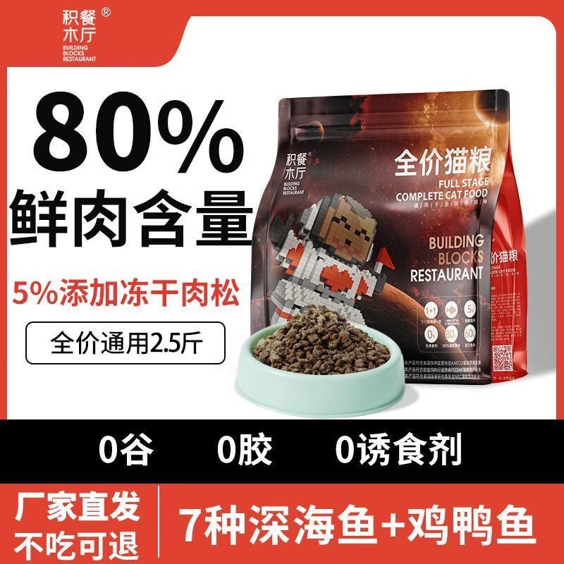 积木餐厅猫咪猫粮2.5斤增肥发腮变胖不掉毛幼猫成猫饭猫粮通用型 40%蛋白七种鱼10斤 0-全年期