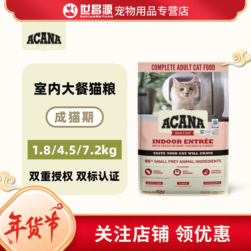 爱肯拿(ACANA)室内大餐成猫期猫粮 成猫猫粮 美版 室内大餐成猫期 4.5KG