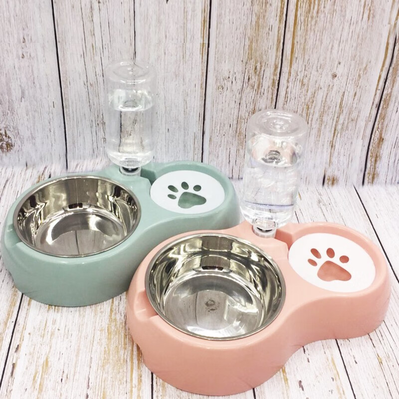 昂贝乐猫碗自动续水喂食猫咪饮水机喂食器一体双碗宠物食盆小狗喝水用品 粉超大 防湿嘴片 水瓶 不锈钢碗