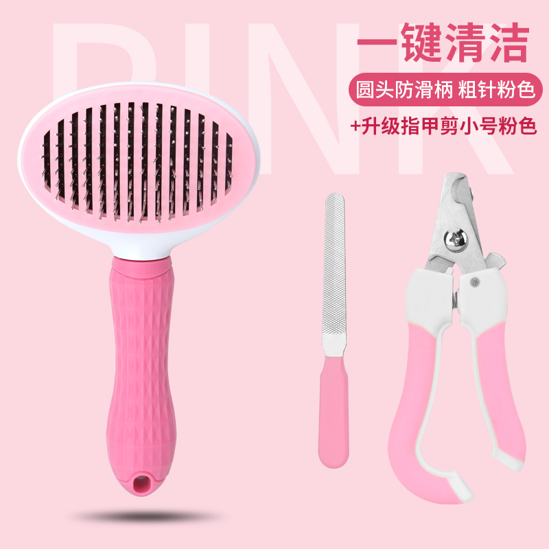 熹宠(XiChong)猫咪梳子狗毛梳去浮毛泰迪猫毛清理器狗狗自洁 钢针梳猫狗梳毛宠物用品 圆头防滑柄针梳【粉色粗针】 升级指甲剪小号粉色