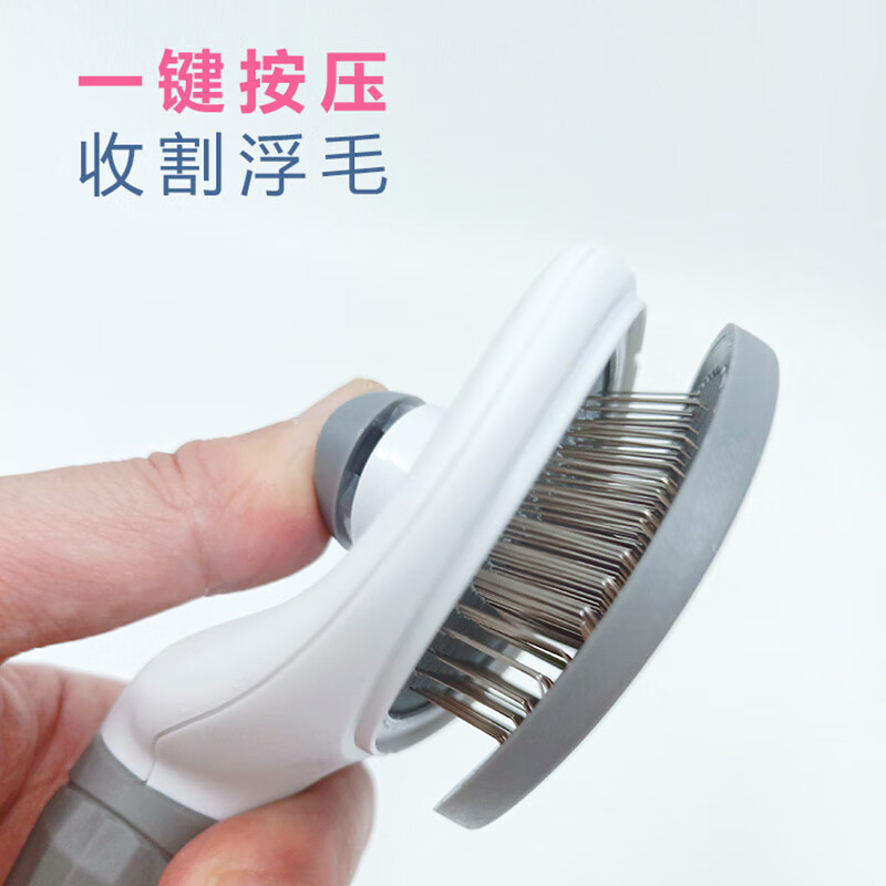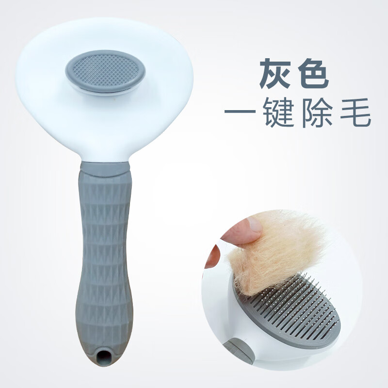 咪贝萌狗毛梳子狗狗猫梳毛神器猫咪用品专用针梳拉毛去毛刷除毛梳 灰色-按键除毛梳