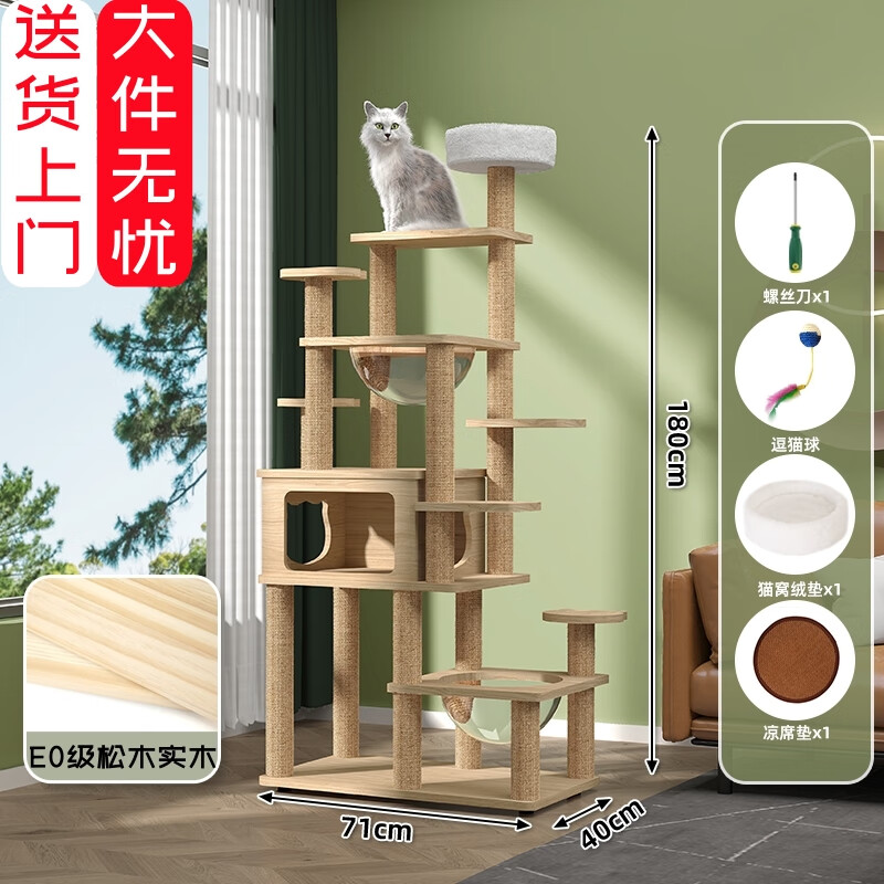 实木猫爬架猫树猫抓板剑麻黄麻猫抓柱太空舱大型多层跳台小型四季通用带猫窝一体通天柱小户型不占地猫咪玩具 宠者堡-C07-雪花堡