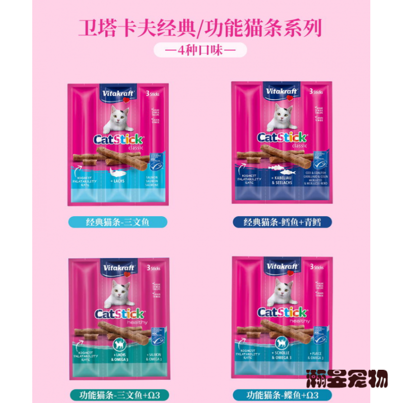 卫塔卡夫猫条磨牙棒猫咪零食vitaIkraft德国猫肉条8g*0板装 鳕鱼三条装0板 鲽鱼3条装10板 1