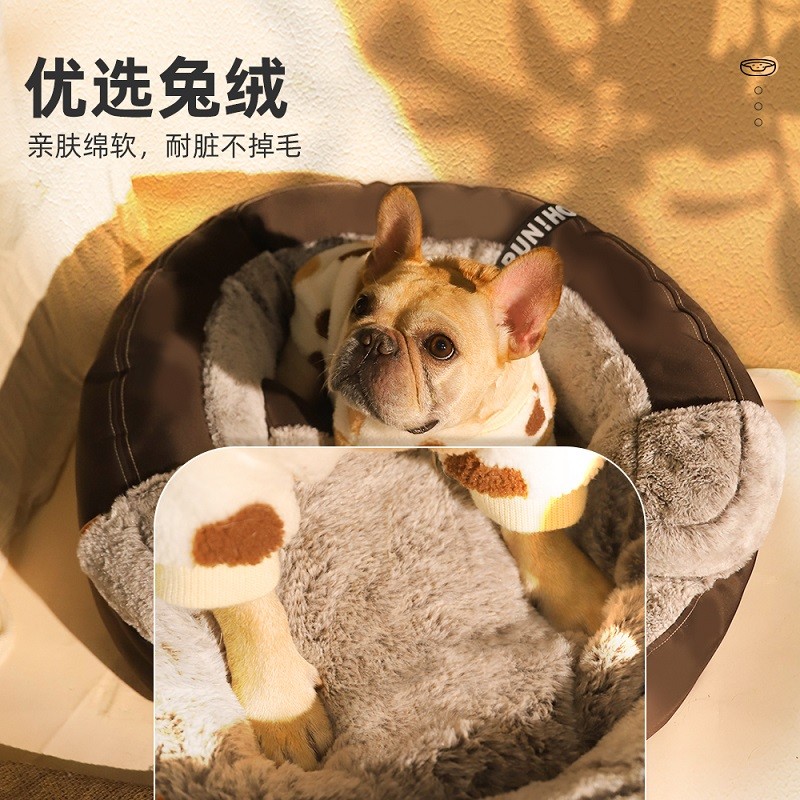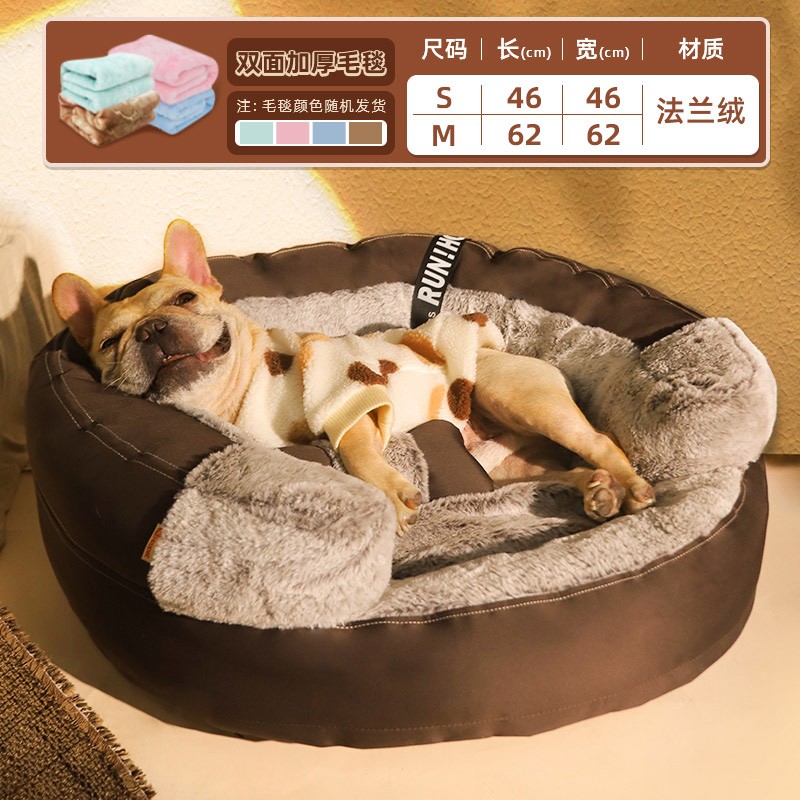 hoopet法斗狗窝泰迪冬季保暖沙发床小狗狗比熊犬可拆洗狗屋冬天宠物垫子 狗窝冬天保暖扶手环型宠物窝 毛毯 62*62*25cm(建议20斤内)