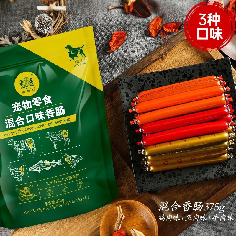 耐威克(NAVARCH)狗粮火腿肠防口臭泰迪金毛训练宠物零食小中大型成幼通用型主粮 狗狗香肠25支(混合味) 【易消化】60%含肉量