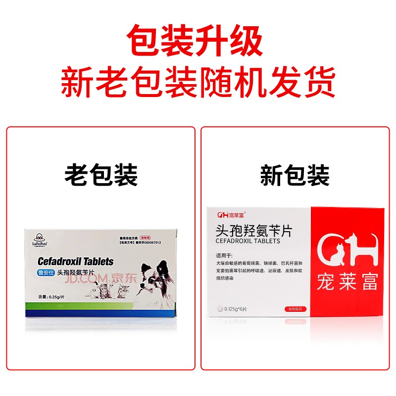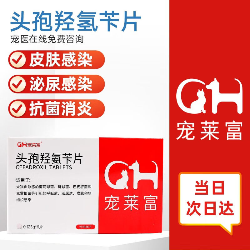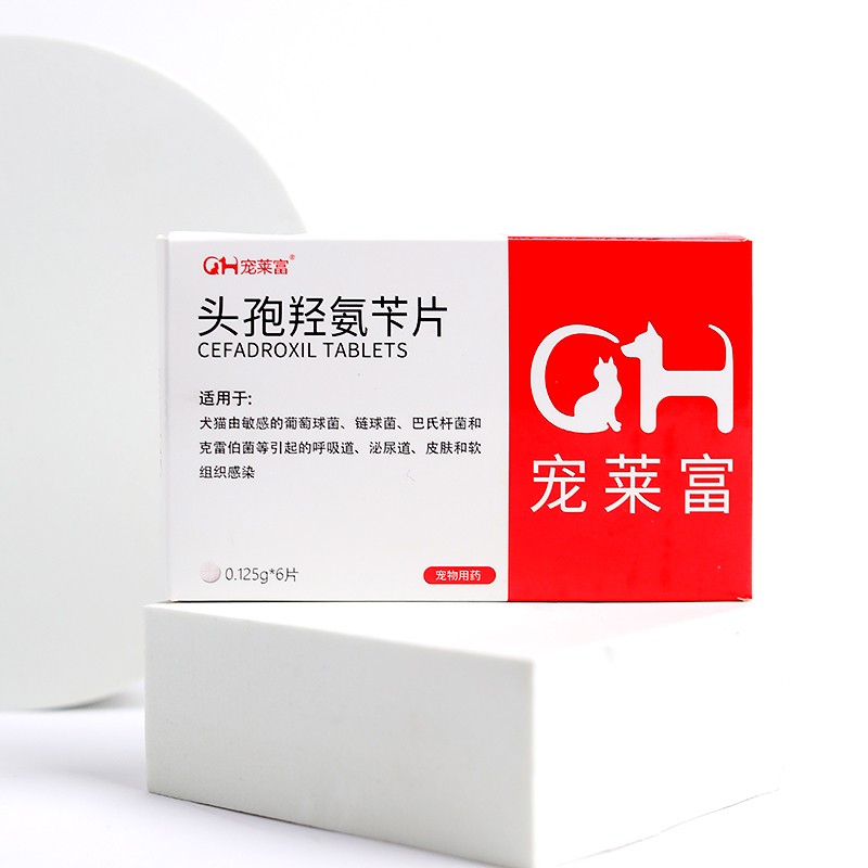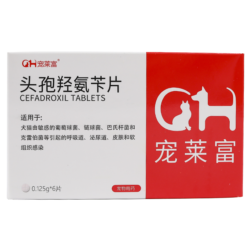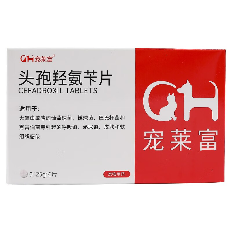 宠莱富宠物头孢羟氨苄片狗狗药猫咪泌尿道感染尿血呼吸道感染咳嗽气喘细菌球菌皮肤病创伤发炎1 0.125g/片x6(12斤吃1片)