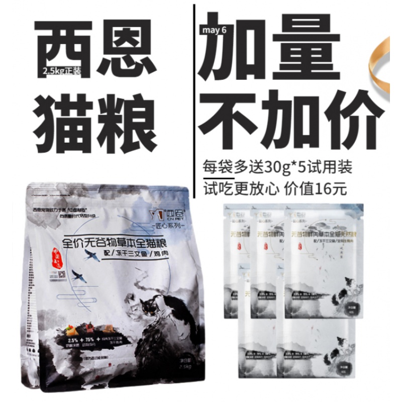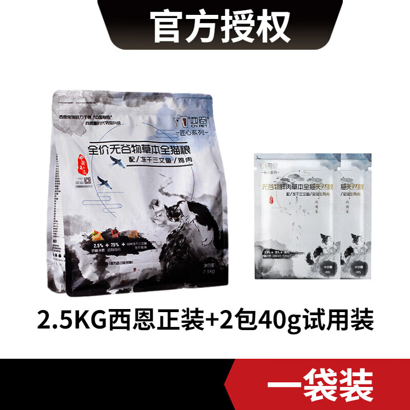 梦动【精选推荐】猫粮无谷物幼猫成猫营养天然宠物粮冻干三文鱼全鸡生 西恩猫粮1袋装 2.5kg 每袋含量