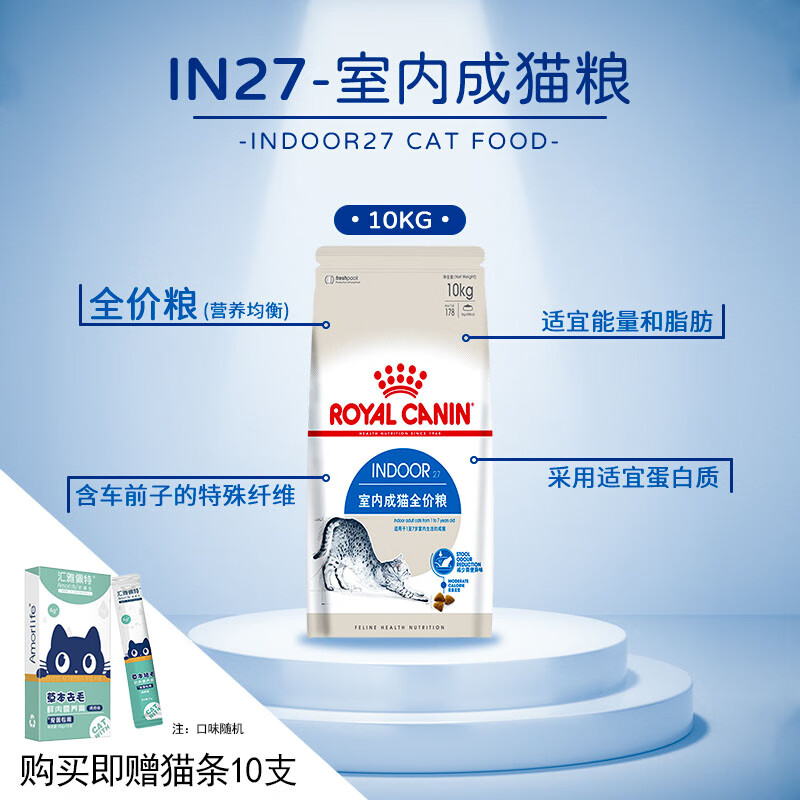 皇家(ROYAL CANIN) 皇家猫粮 In27室内成猫猫粮 去毛球 肠胃呵护英短布偶猫全价粮 In27室内成猫粮≥12个月10kg