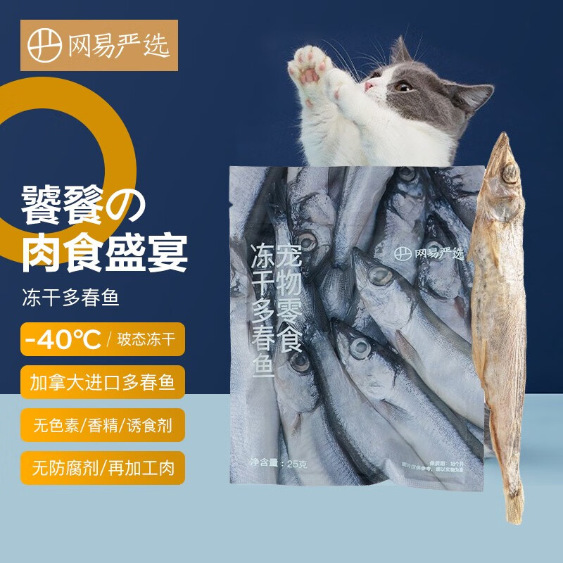 网易严选 100%纯肉 宠物每日冻干礼盒猫粮狗粮零食鸡肉鸭肉牛肉 冻干多春鱼25g