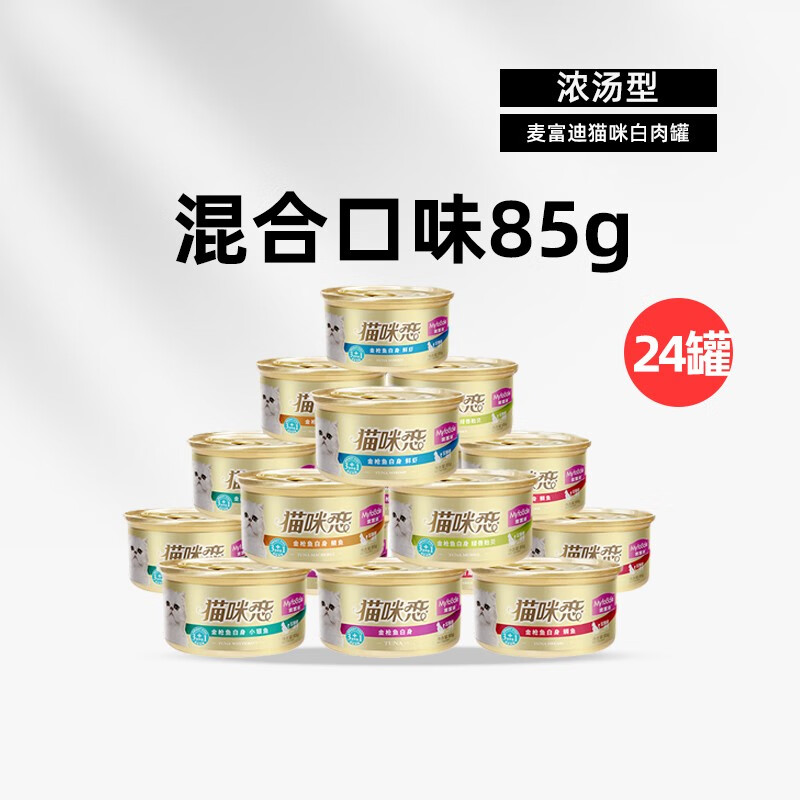 麦富迪猫罐头24罐整箱白肉猫咪零食浓汁型肉冻补水零食湿粮成猫营养 猫咪恋浓汤混合口味85g*24罐