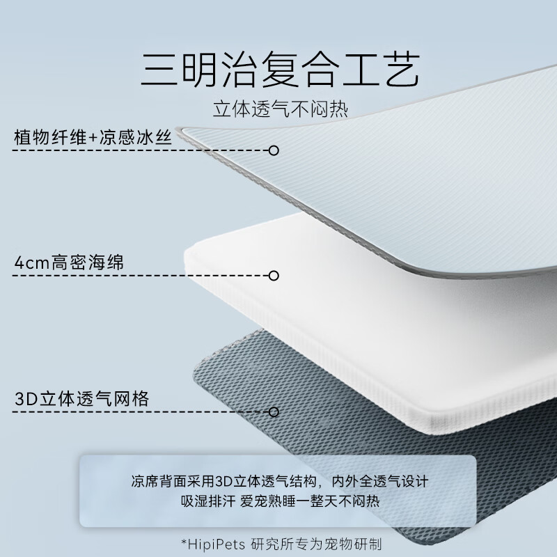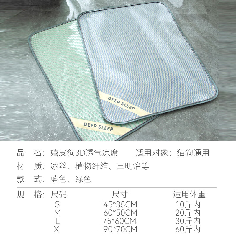 嬉皮狗(hipidog)狗狗凉席夏天狗窝睡垫夏季狗垫子睡觉用降温凉垫猫咪垫子宠物冰垫 蓝色冰藤席 S(45*35CM)建议体重10斤内