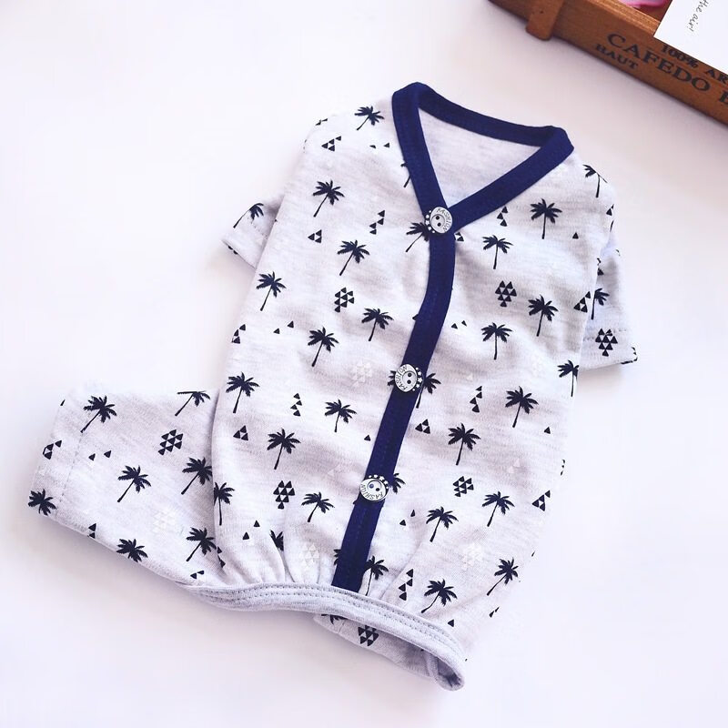 狗狗衣服 春季狗狗睡衣 毛衣泰迪小型犬比熊吉娃娃连体睡衣家居服宠物保暖加厚狗狗猫咪衣服 灰色睡衣【全棉】 XS码【建议2-3斤】
