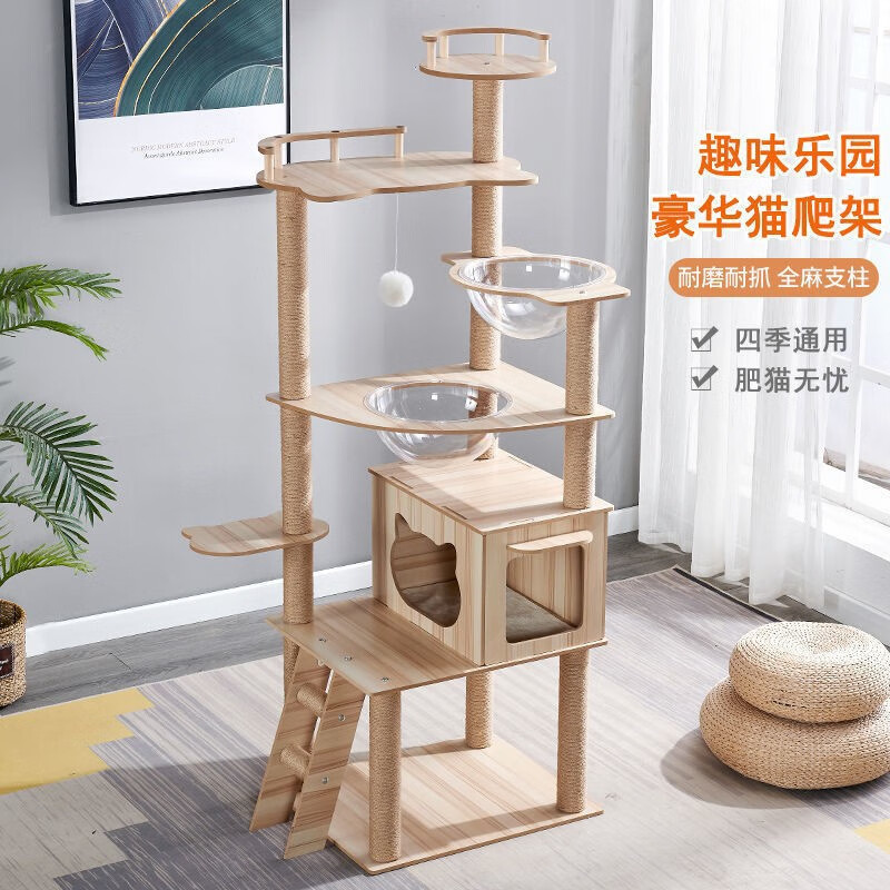 实木猫爬架 猫树磨爪猫跳台猫屋 两只猫别墅小猫咪猫抓板 猫窝款015