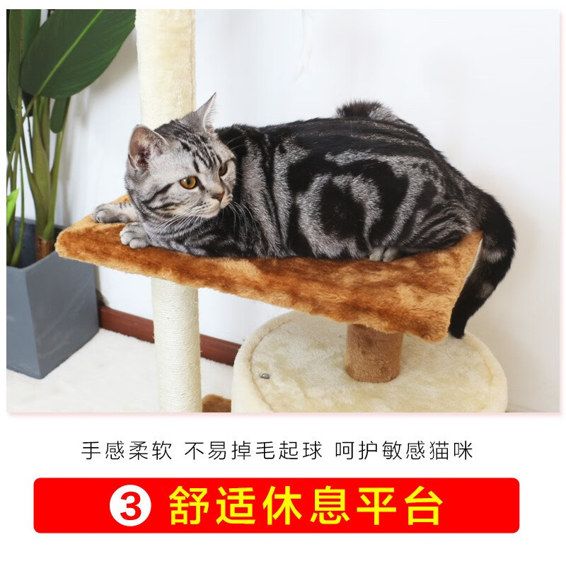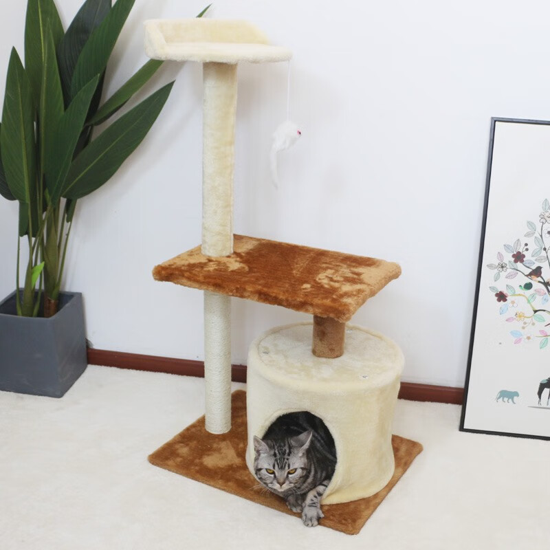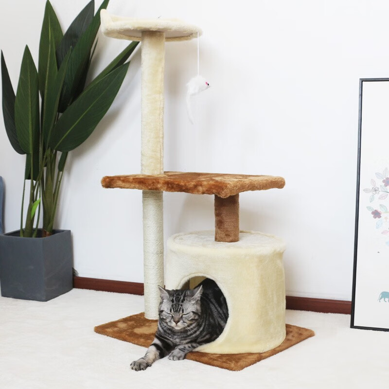 猫爬架 大型稳定性好耐抓宠物猫架子剑麻猫玩具猫树 猫爬架三层拼色90cm高12斤