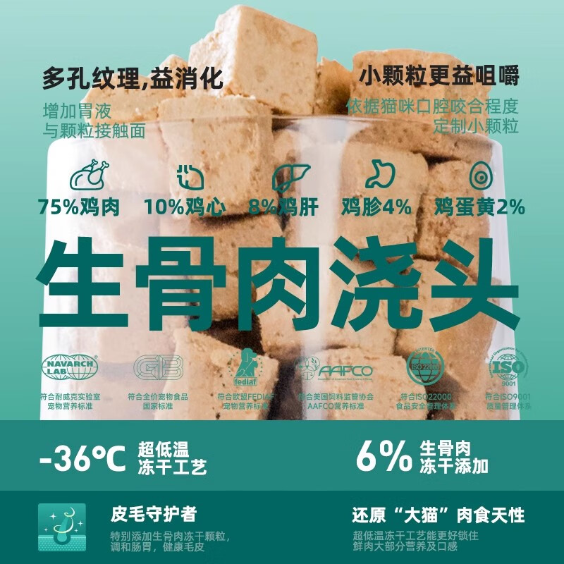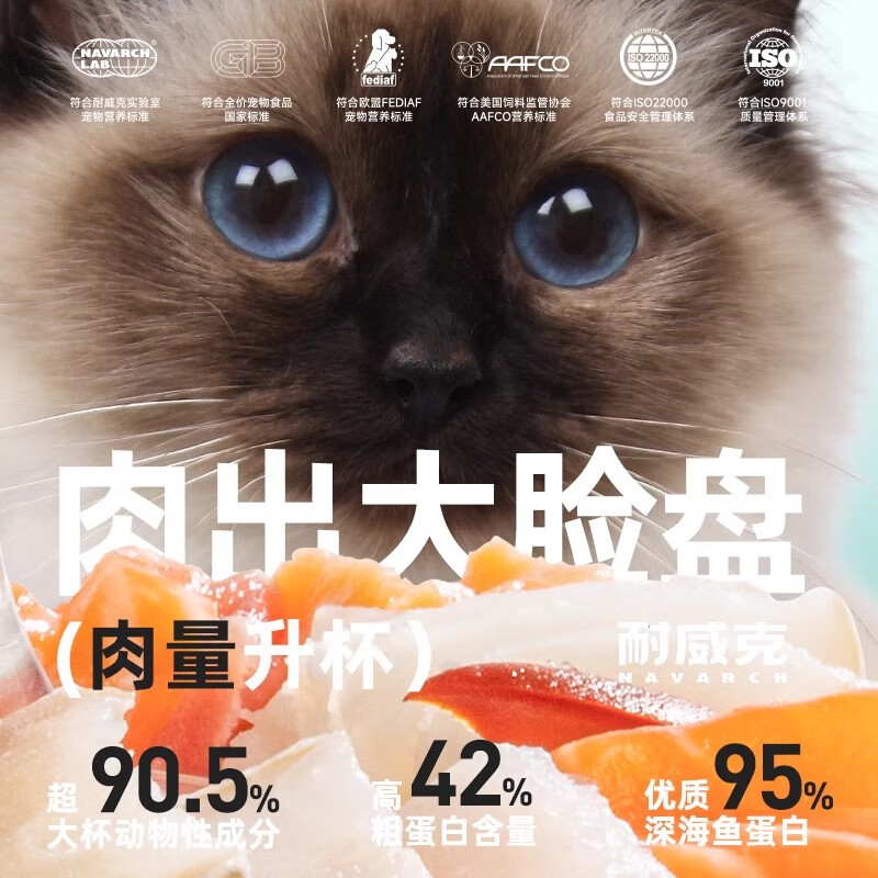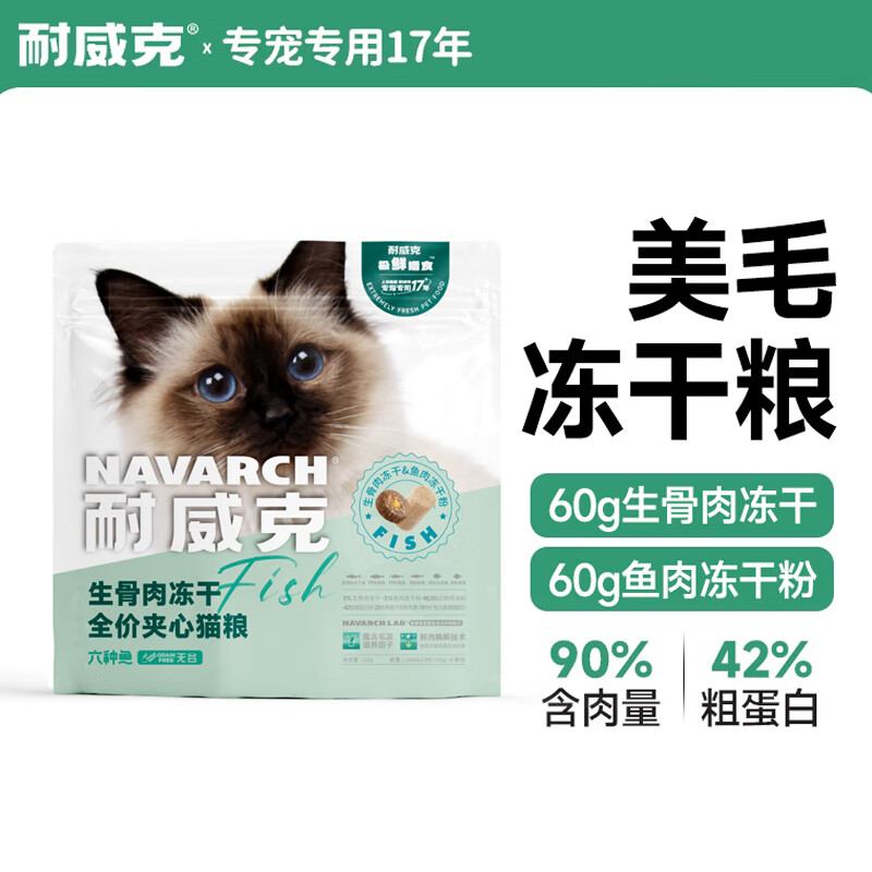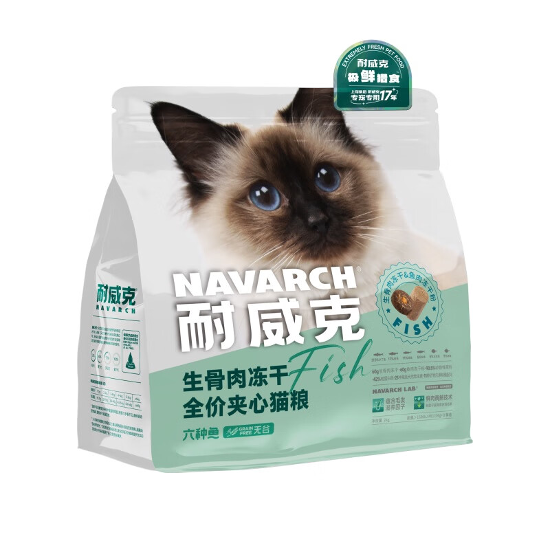 耐威克(Navarch) 猫粮 生骨肉冻干鲜肉六种鱼低温烘焙全鸡宴无谷全价全期成幼猫粮 六种鱼冻干美毛升级夹心猫粮2kg