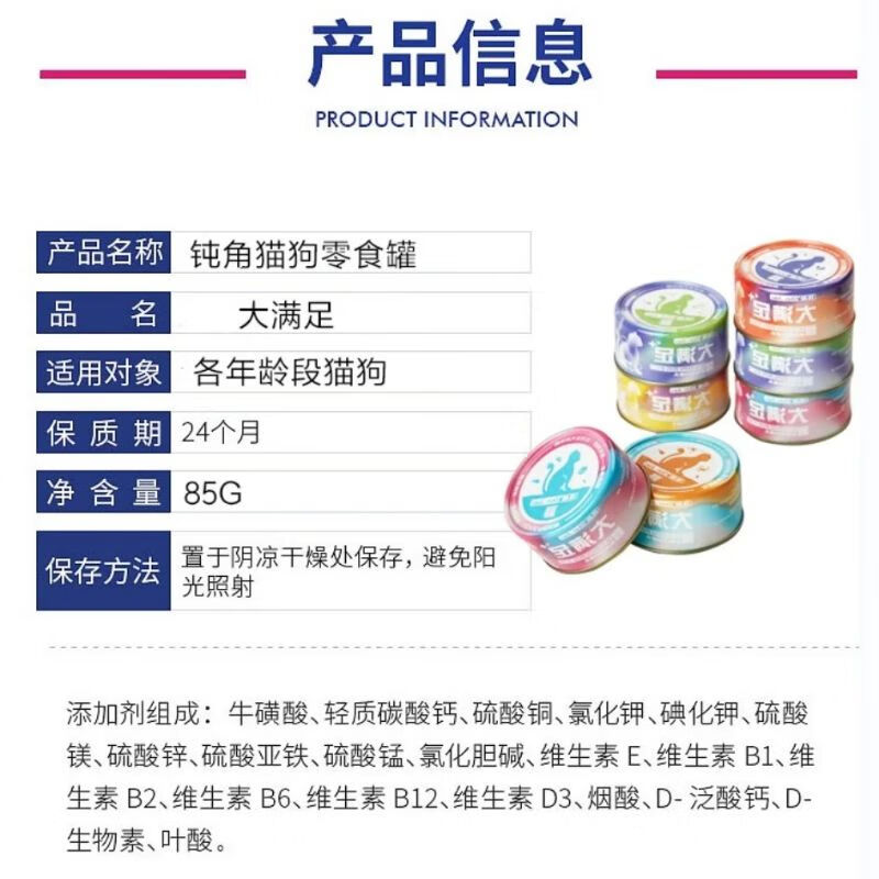 钝角大满足猫咪罐头宠物猫鸡肉大块肉85g24罐补充营养成猫幼猫条整箱 混合口味 85g *24罐