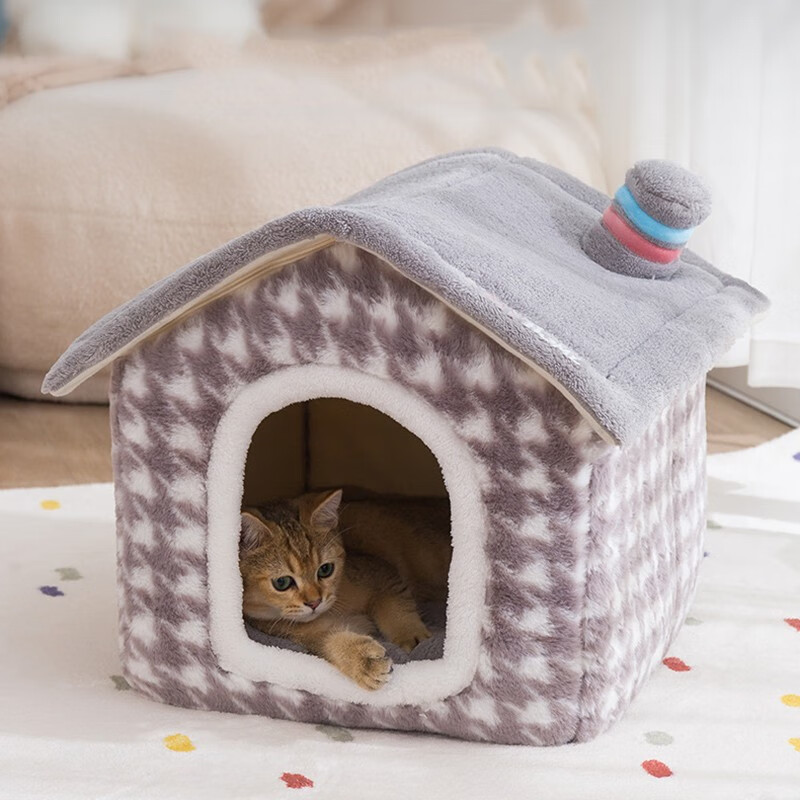 新款米南网红宠物房子帐篷四季款狗窝猫窝可拆洗可爱刺绣小型犬泰