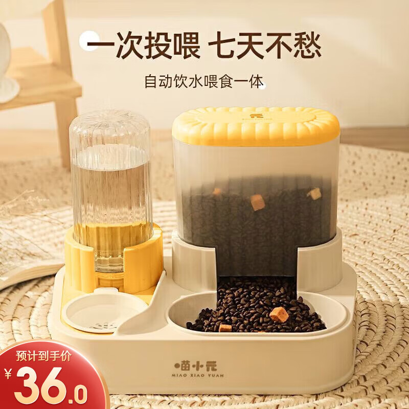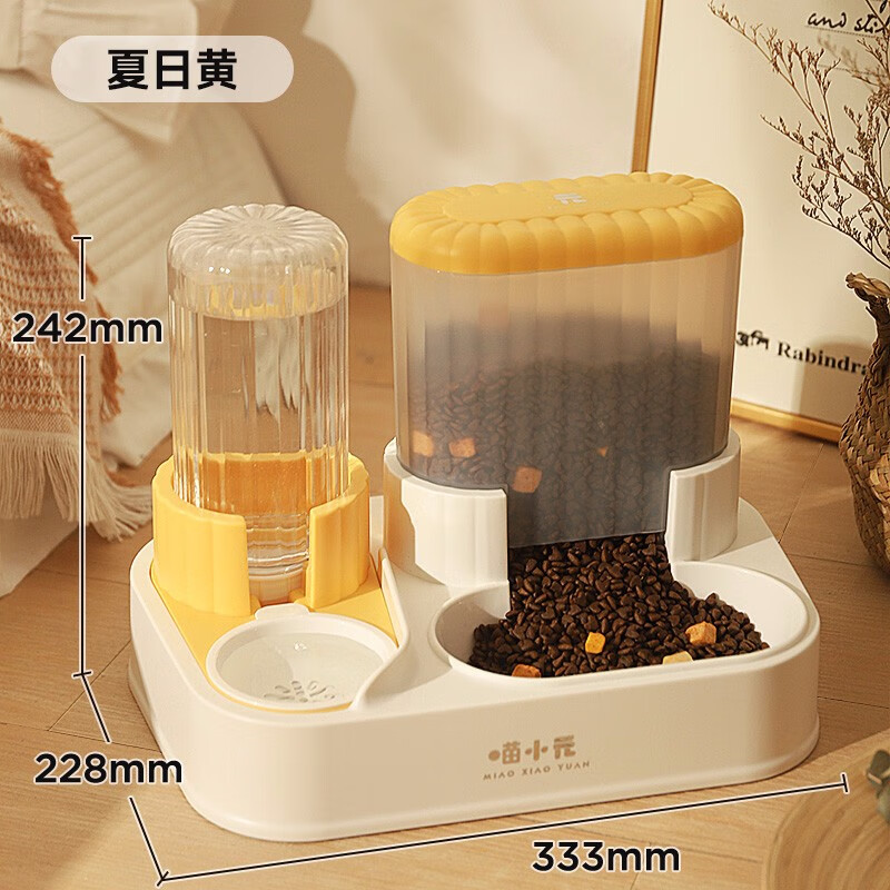 喵小元自动饮水喂食器猫碗双碗猫粮盆饮水器一体幼猫幼犬防打翻猫咪水碗 夏日黄 带滤芯-饮水喂食一体