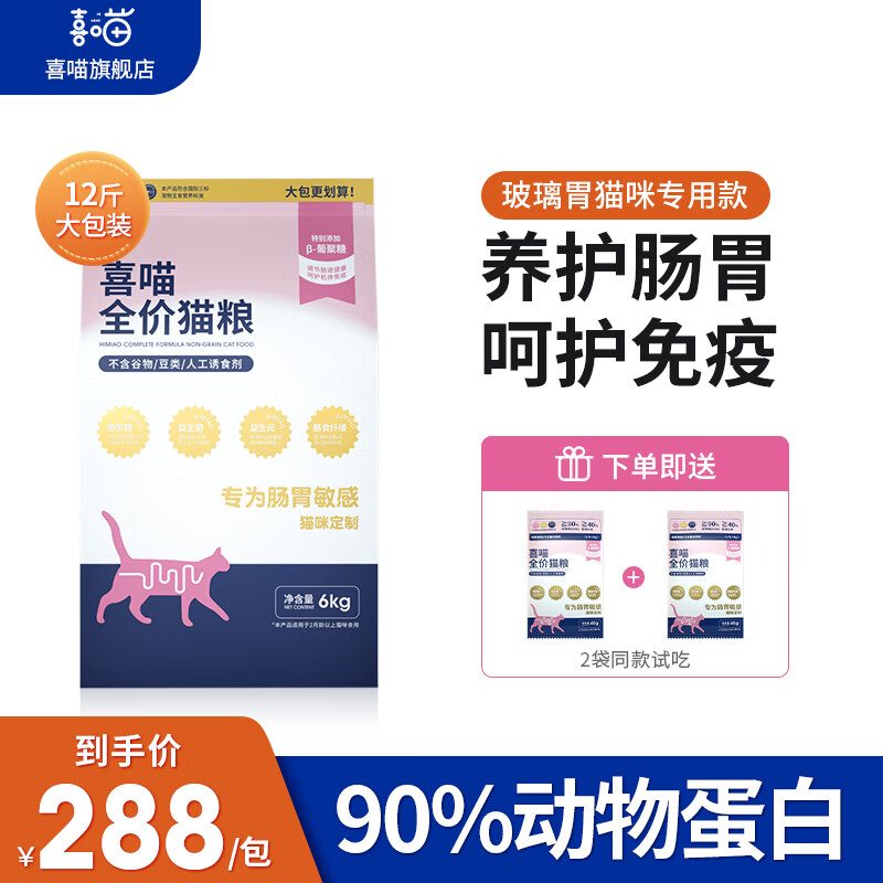 喜喵猫粮成猫幼猫全价无谷通用型猫主粮高蛋白营养增肥猫粮 【玻璃胃专用猫粮】6kg*1包