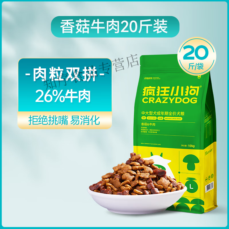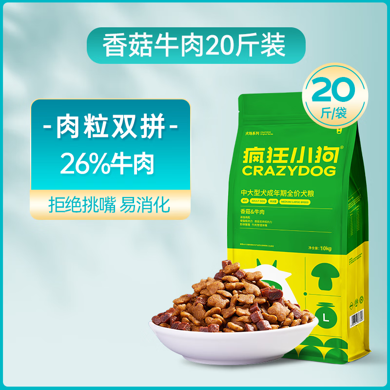 疯狂小狗狗粮40斤装通用型金毛拉布拉多边牧柴犬中大型犬成犬幼犬 肉粒双拼10kg 0lb /以各选项为准