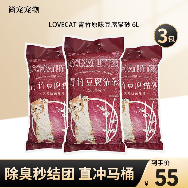 爱宠爱猫猫砂 love cat猫砂 新款原味绿茶豆腐猫砂除臭无尘易结团可冲马桶 原味青竹豆腐猫砂 5斤*3包