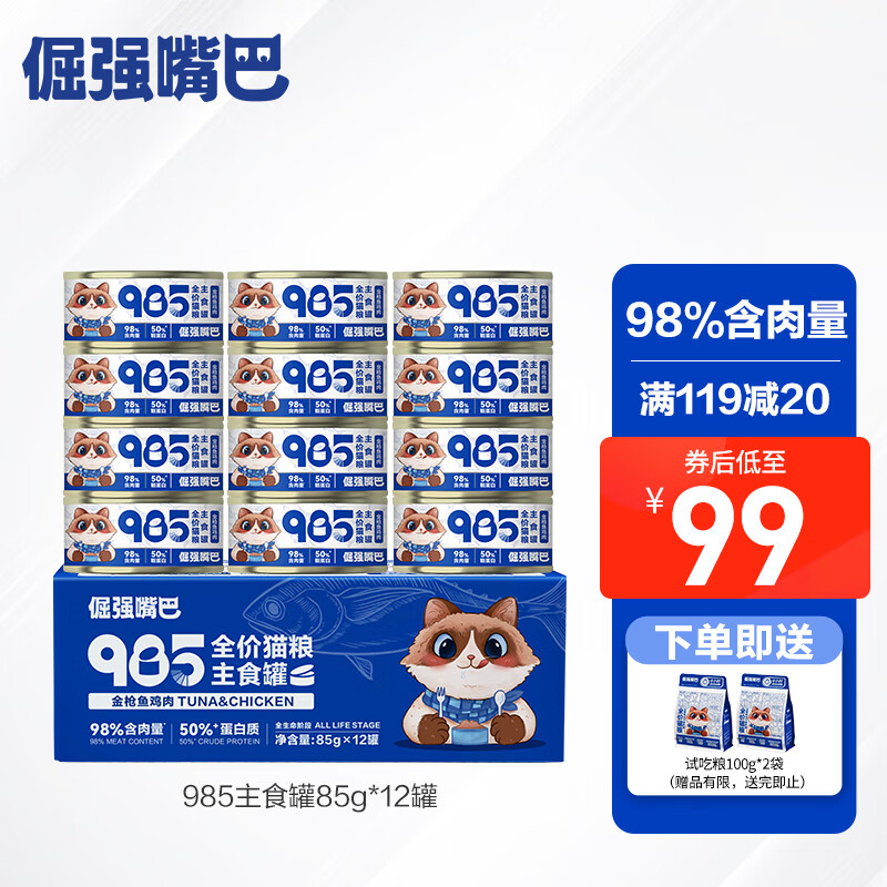 倔强嘴巴985全价猫粮猫罐头主食罐金枪鱼鸡肉味 985全价猫粮主食罐85g*12罐