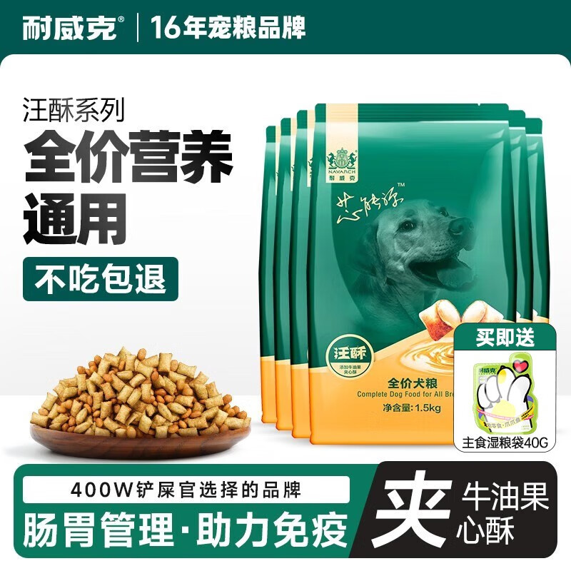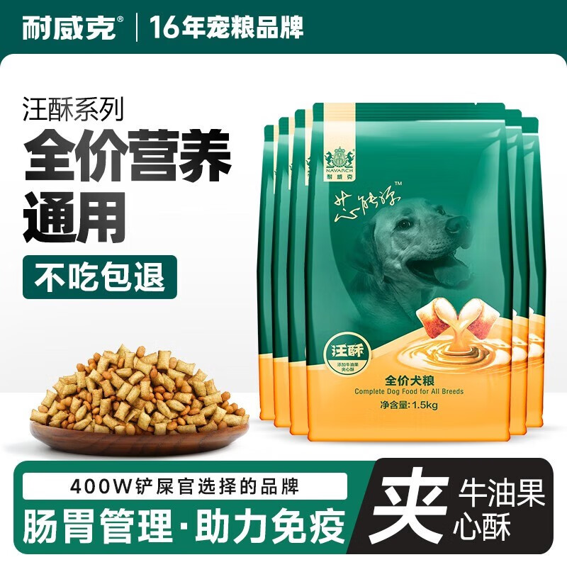 耐威克 狗粮成犬幼犬双拼夹心粮大中小型犬通用3kg 夹心鸡肉牛油果汪酥1.5kg*6包