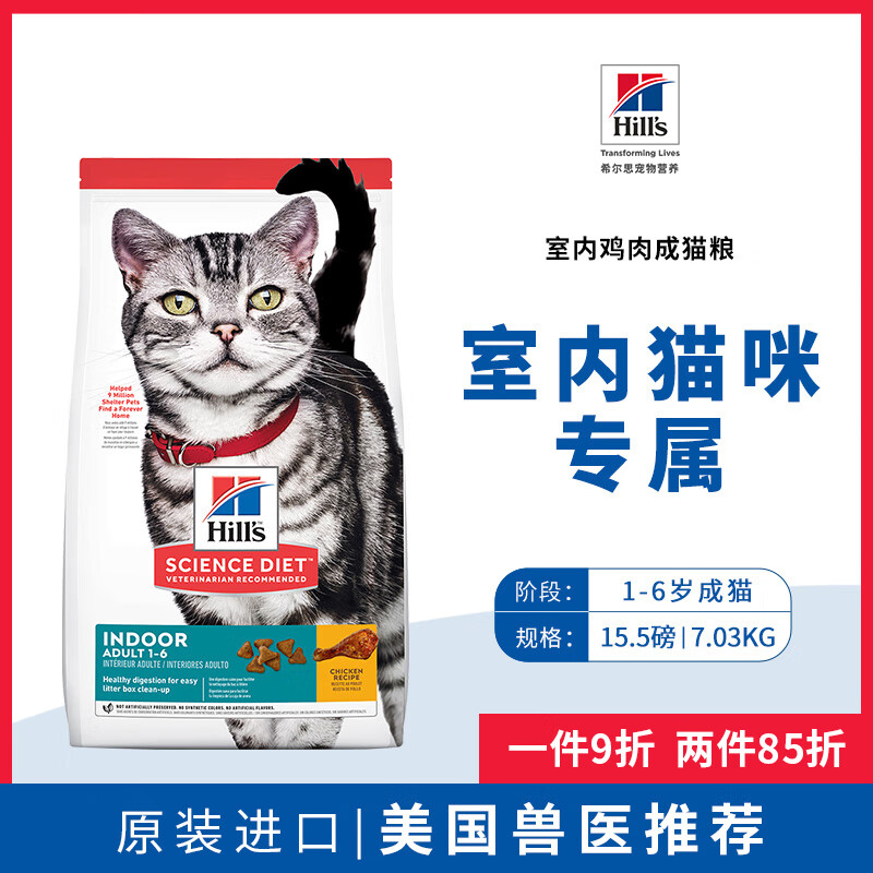 希尔思Hill‘s美国进口成猫室内专用全价猫粮 15.5磅/7.03KG