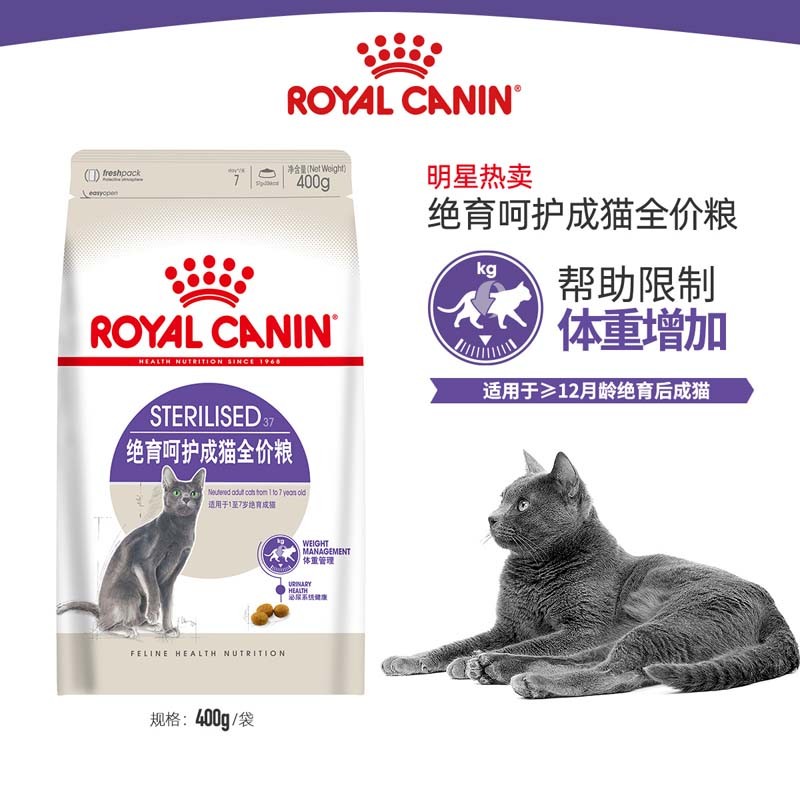皇家猫粮SA37绝育全价成粮母猫公猫低脂减肥维持体重泌尿健康功能猫粮英短蓝猫布偶 400g