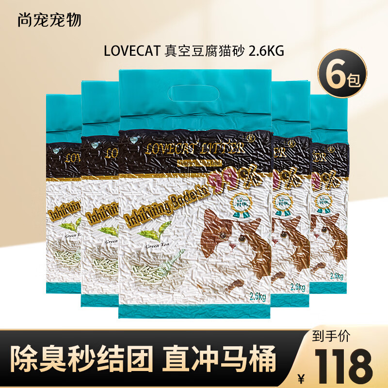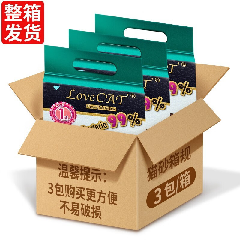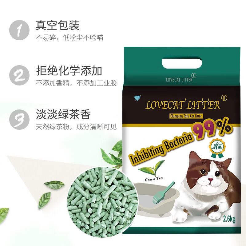 爱宠爱猫猫砂 love cat猫砂 新款原味绿茶豆腐猫砂除臭无尘易结团可冲马桶 【新款】绿茶豆腐猫砂 5.2斤*6包