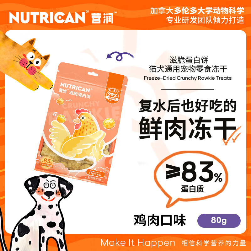 营润 冻干滋脆蛋白饼-鸡肉口味80g 宠物营养高蛋白猫狗通用零食冻干饼