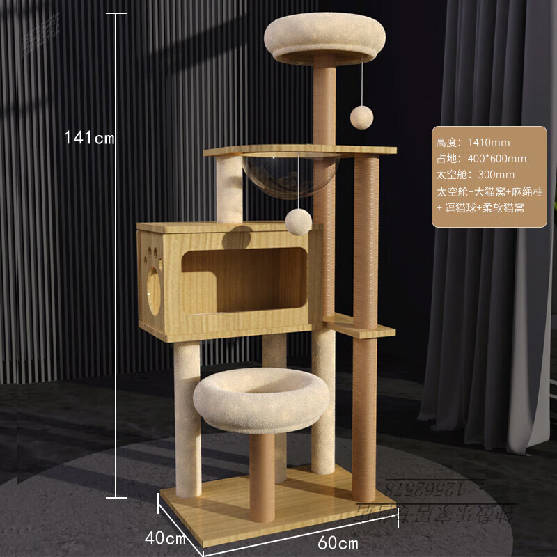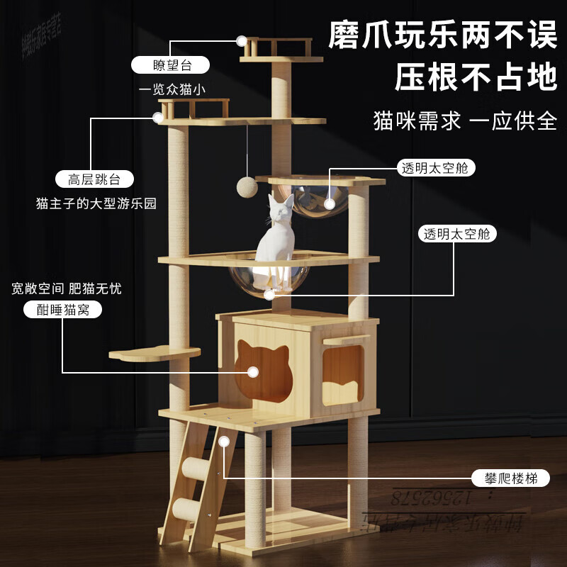 猫爬架猫窝猫树一体猫抓板猫爬架子不占地太空舱通天柱实木猫跳台 【童话城堡-R21】
