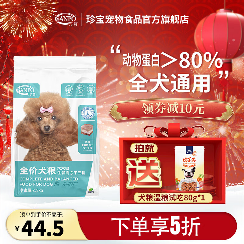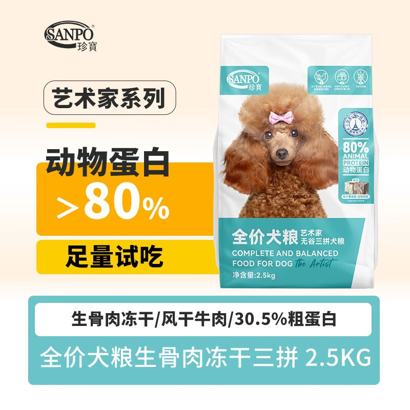 珍宝(SANPO)【24年4月到期】ADM珍宝冻干狗粮生骨肉冻干三拼成年幼年通用犬粮 2.5kg 全犬通用
