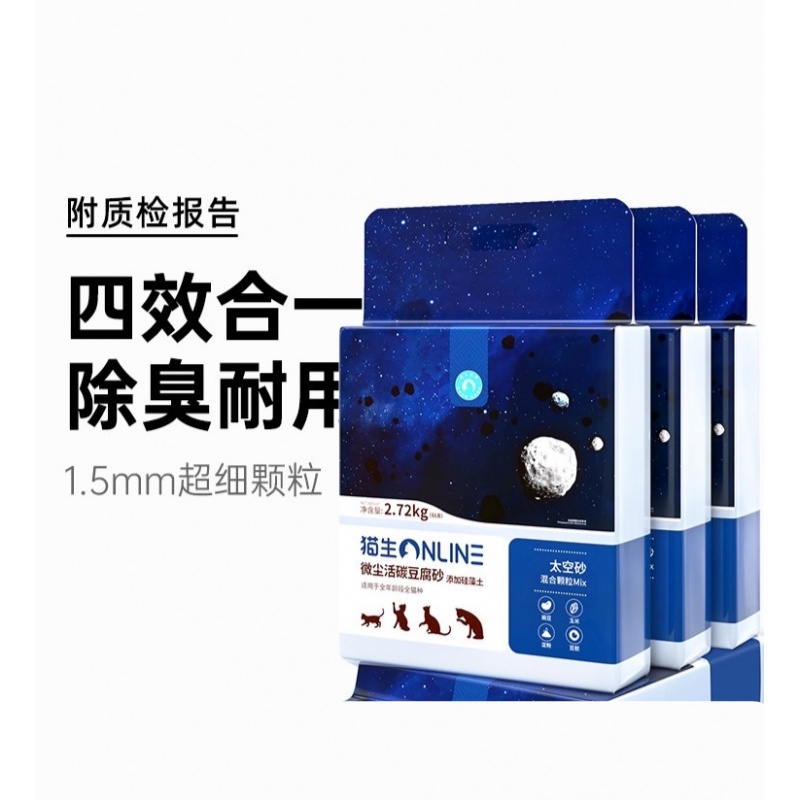 猫生猫砂太空豆腐猫砂10公斤猫沙除臭20斤1.5mm混合活性炭 混合版4包10.88kg|奶香 幼年期猫粮50g试