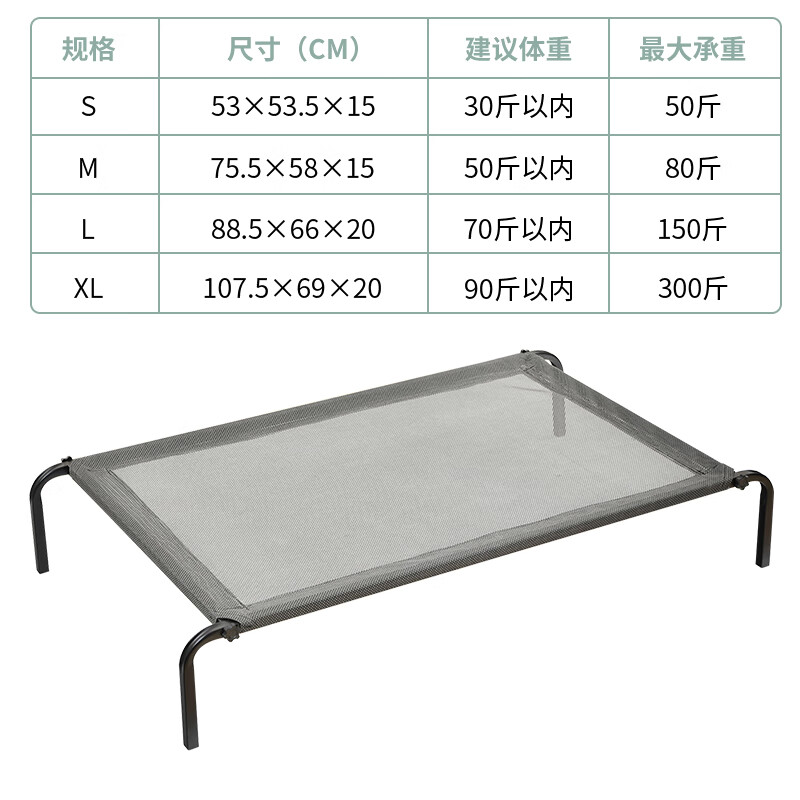 余三哥(yusange)狗窝四季通用宠物行军床离地防潮金毛冬天保暖可拆洗大型犬狗狗床 黑色架 灰色网布 M(50斤内)送专用床枕