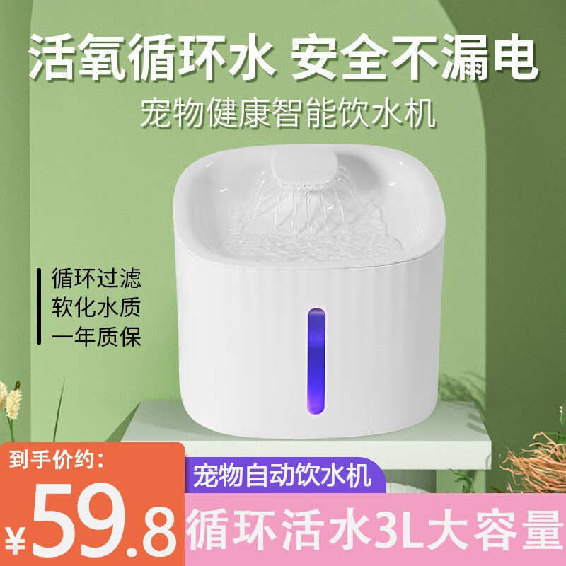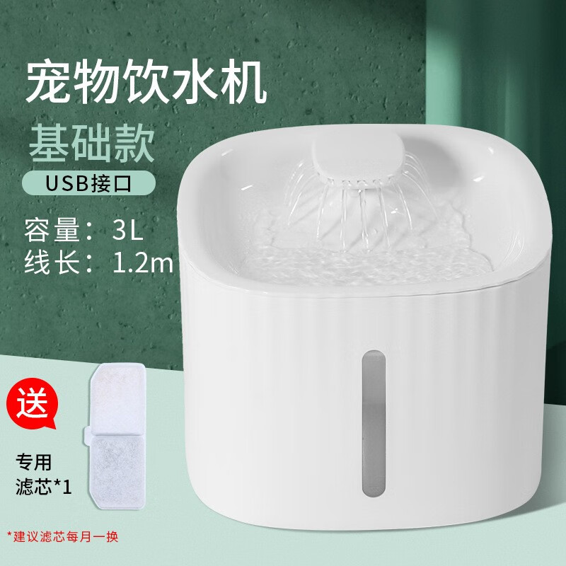 瓜洲牧宠物智能饮水机循环活水活性炭过滤低噪音猫狗喝水喂水器3L大容量 智能饮水机3L大容量-白色