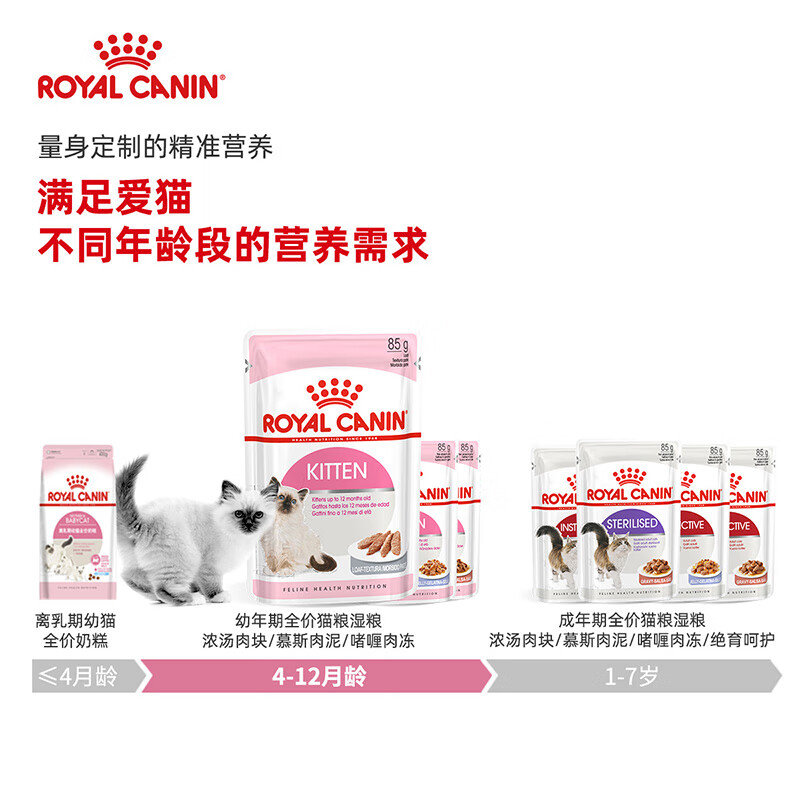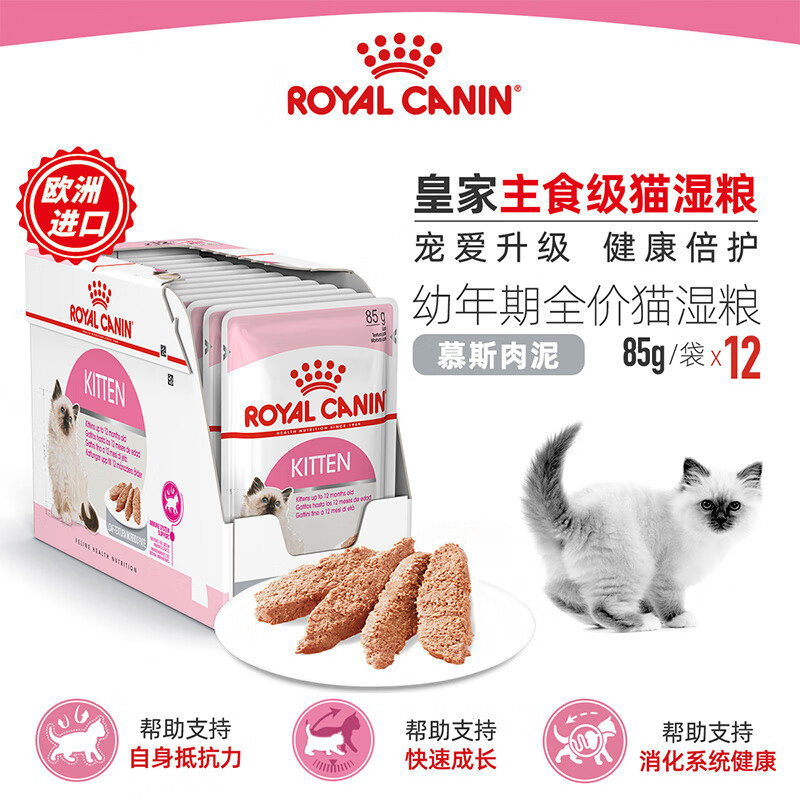 皇家猫粮 幼猫湿粮 软包猫罐头KLP 通用粮 4-12月 慕斯肉泥 85G*12