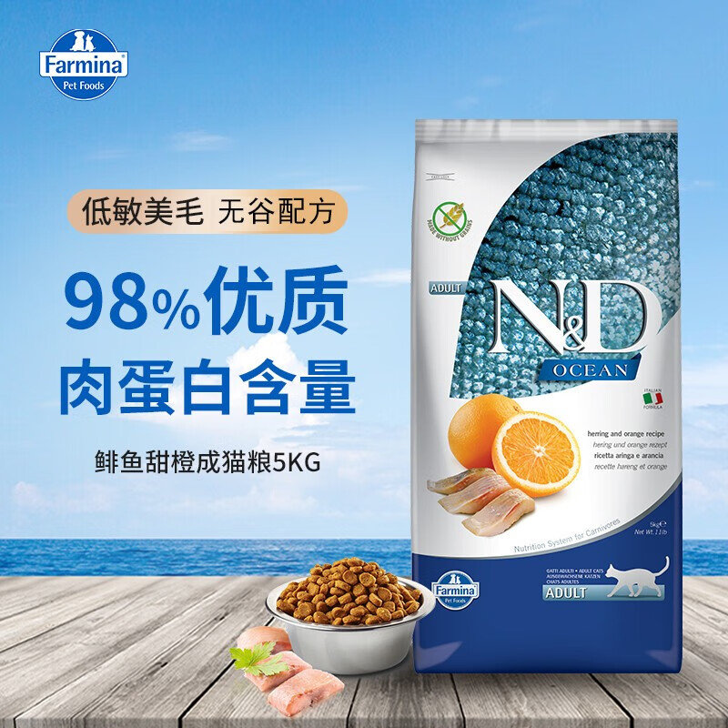 法米娜猫粮原装进口无谷高蛋苹果猪石榴鸡肉营养低敏高肉增肥发腮成猫粮 【临期23/12】鲱鱼甜橙成猫粮5kg