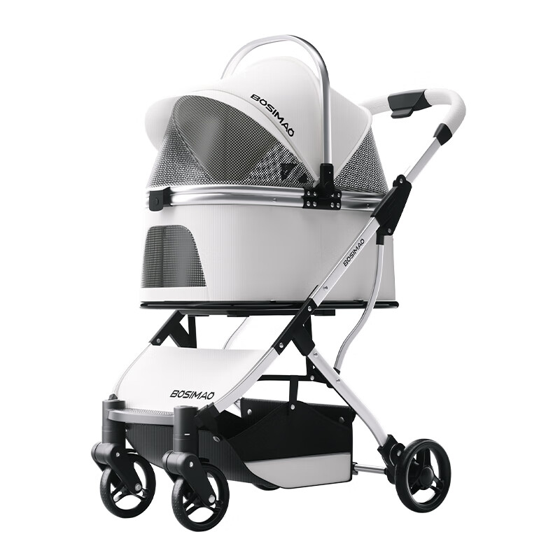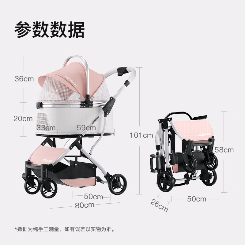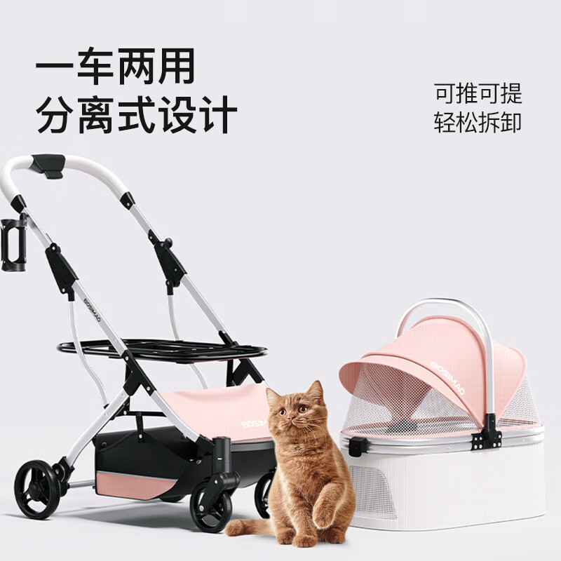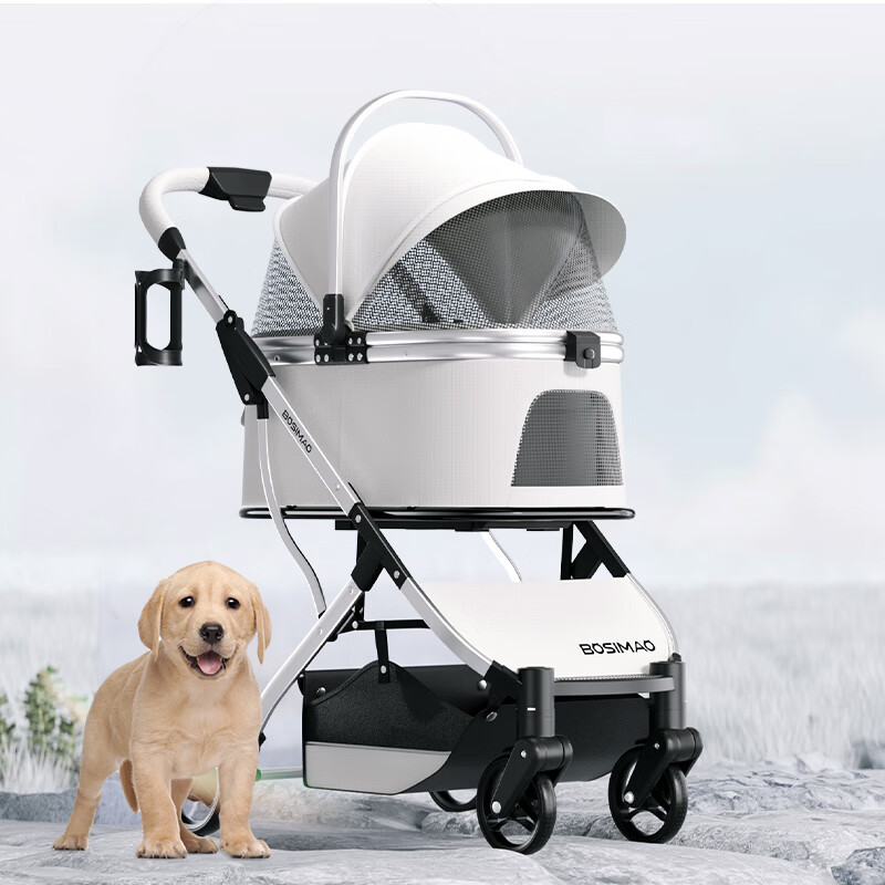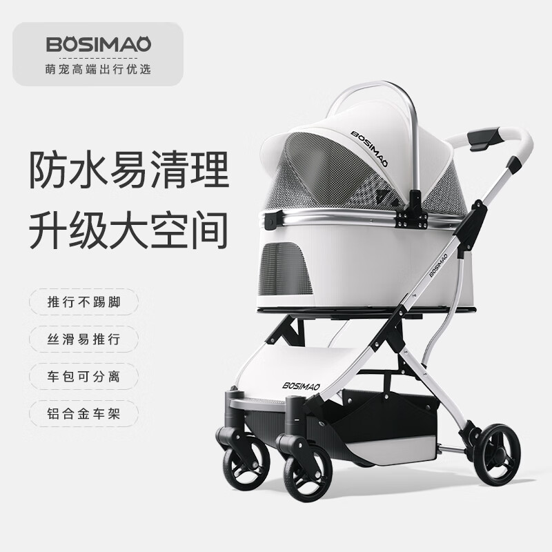 BOSIMAO宠物推车轻便可折叠两只小狗狗外出手推车可分离猫咪车防水易清理 茶白色【耐脏科技】