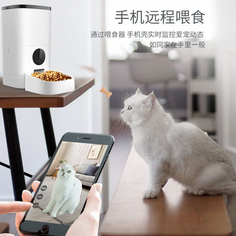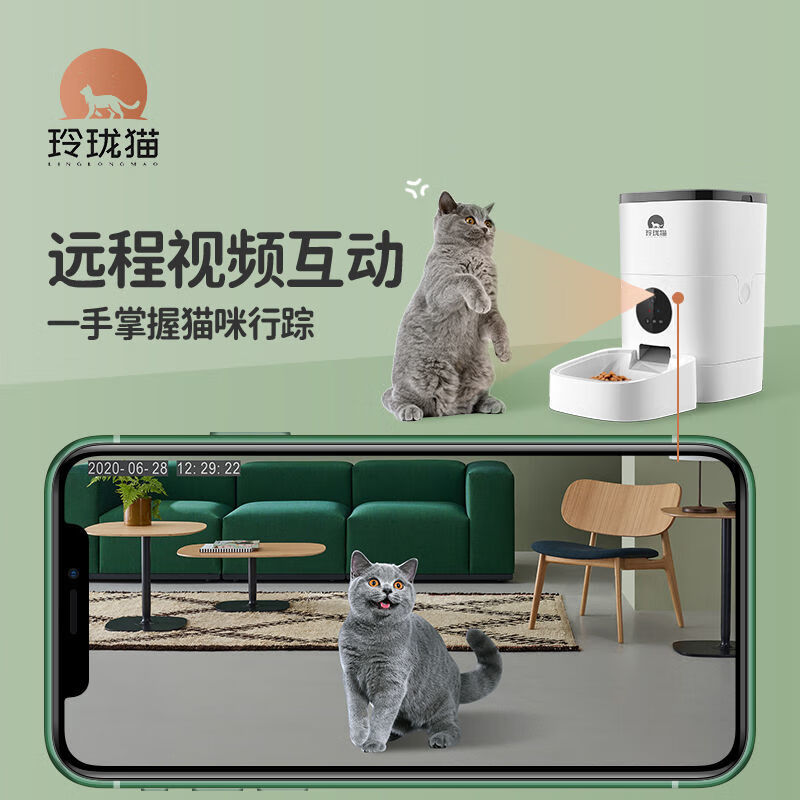 玲珑猫自动喂食器宠物自动喂食器定时投食机狗狗猫咪智能自动猫粮盆 标配塑料食盆 手机控制版(wifi)