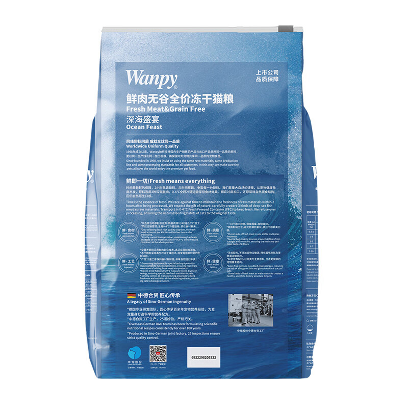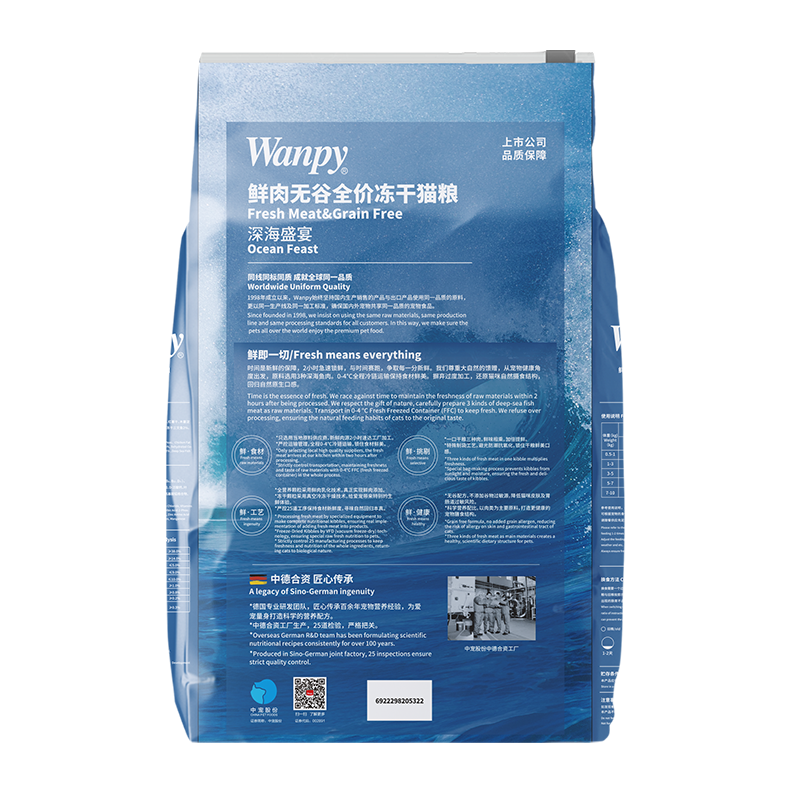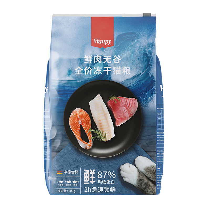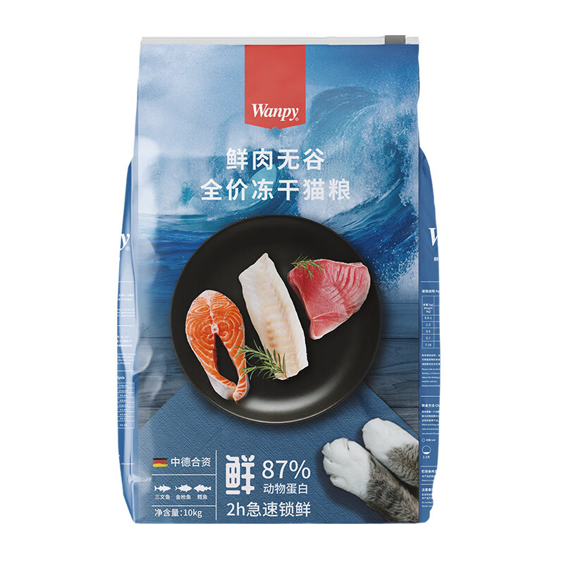 顽皮(Wanpy)猫粮鲜肉无谷全价冻干猫粮火鸡肉成猫幼猫粮牛羊肉双拼猫粮蓝猫粮通用型 深海盛宴10kg