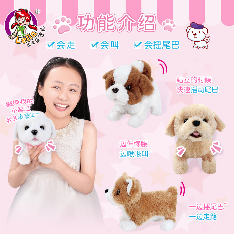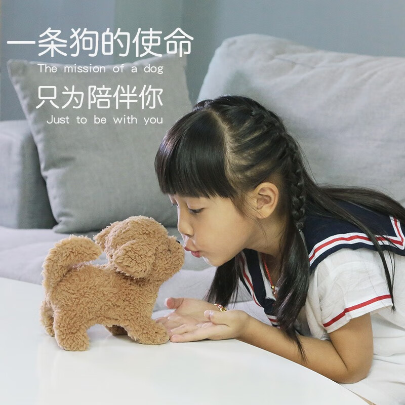 乐吉儿 儿童电动毛绒玩具狗仿真宠物狗电动玩具狗 金毛犬 生日礼 电动泰迪犬